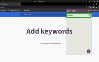 Met een enkele klik kan de gebruiker de extensie in- of uitschakelen. Na installatie hoeft men alleen maar de relevante zoekwoorden in te voeren die men niet in de geschiedenis wil zien. Safe History biedt een gebruiksvriendelijke interface en een effectieve manier om de controle over de browse-activiteit te behouden.